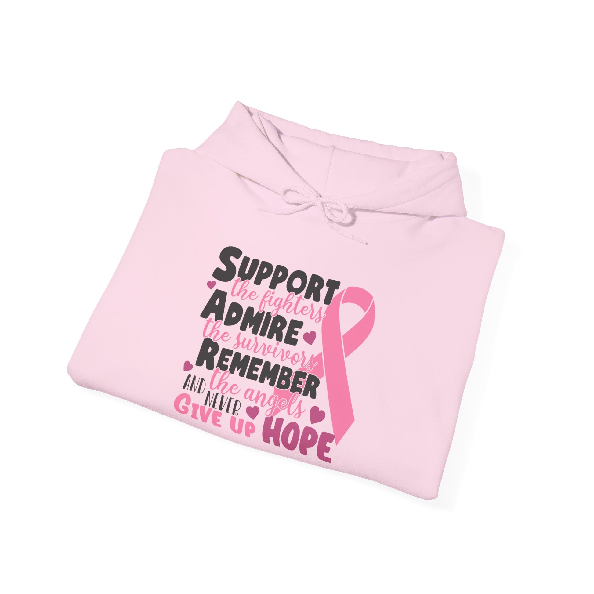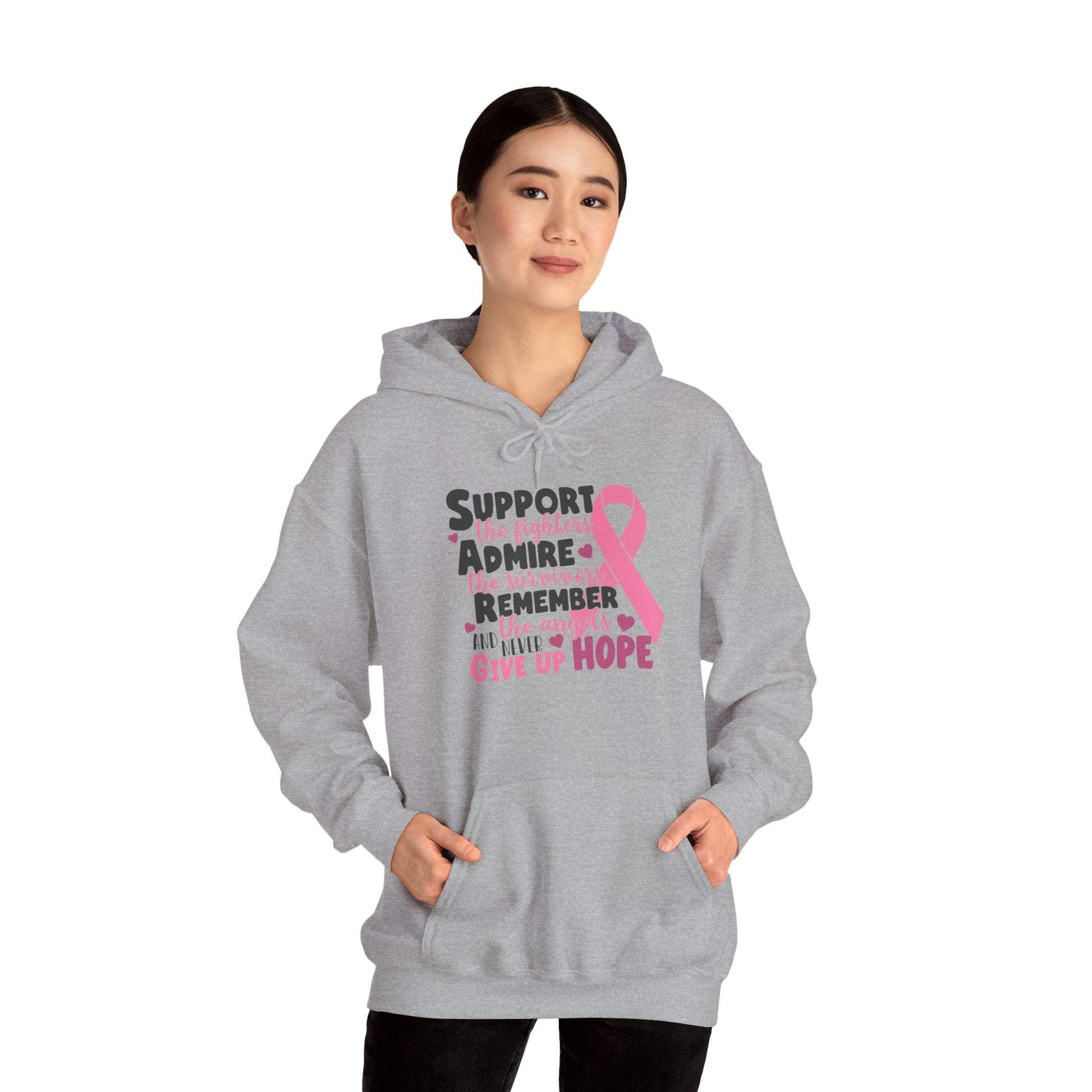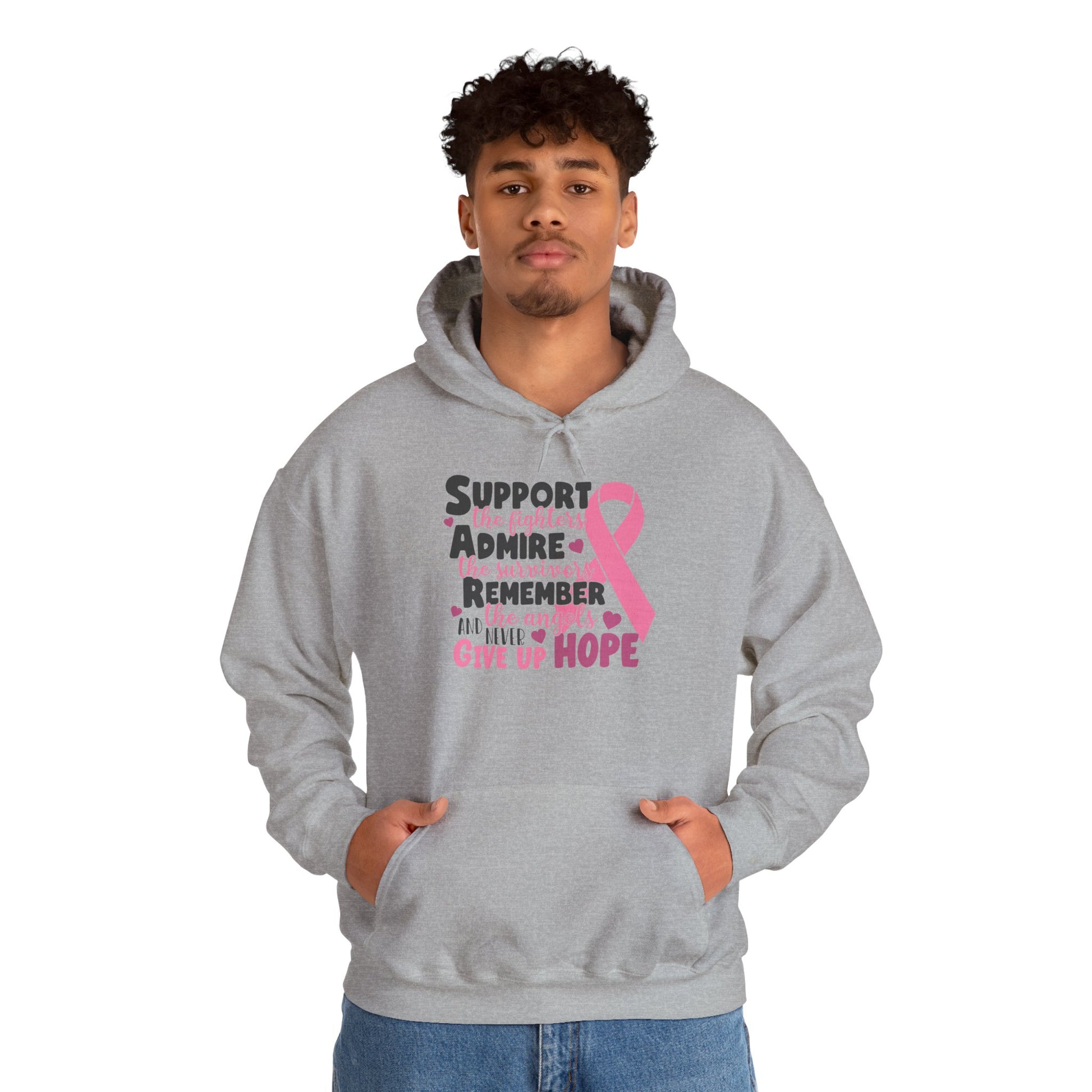 A soft, comforting hoodie that wears like an embrace. This medium-weight pullover brings quiet strength to everyday moments with a heartfelt breast-cancer-awareness design—support, admire, remember, and a bright pink ribbon that stands for hope. The roomy kangaroo pocket and double-lined hood invite you to pull it on for clinic visits, fundraising walks, or slow mornings at home. It pairs easily with jeans or leggings and layers cleanly under a coat when the wind picks up. Wear it to show solidarity, to hold close the memory of someone you love, or simply to carry a gentle reminder of resilience through the day.
