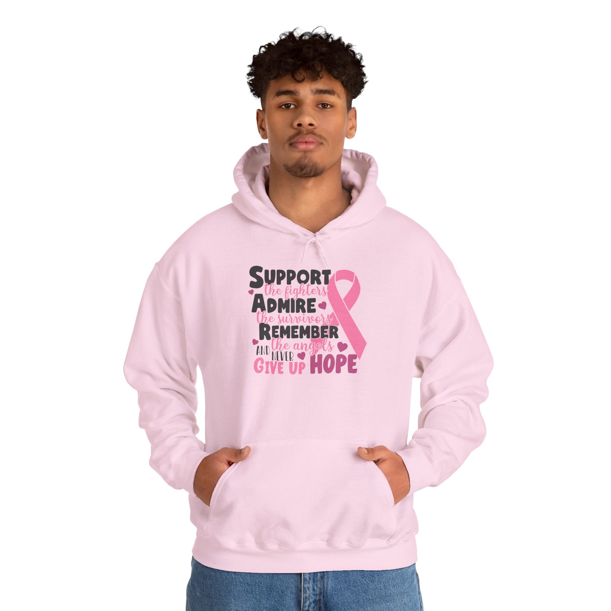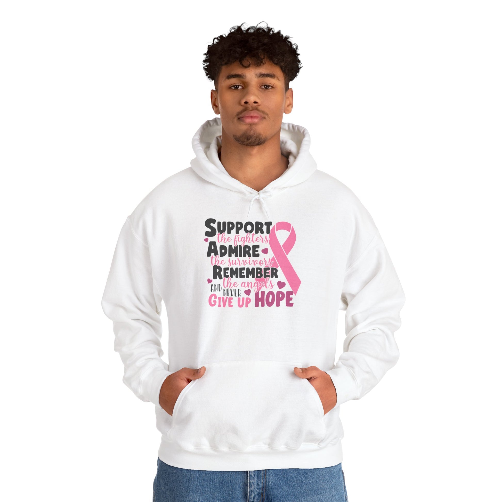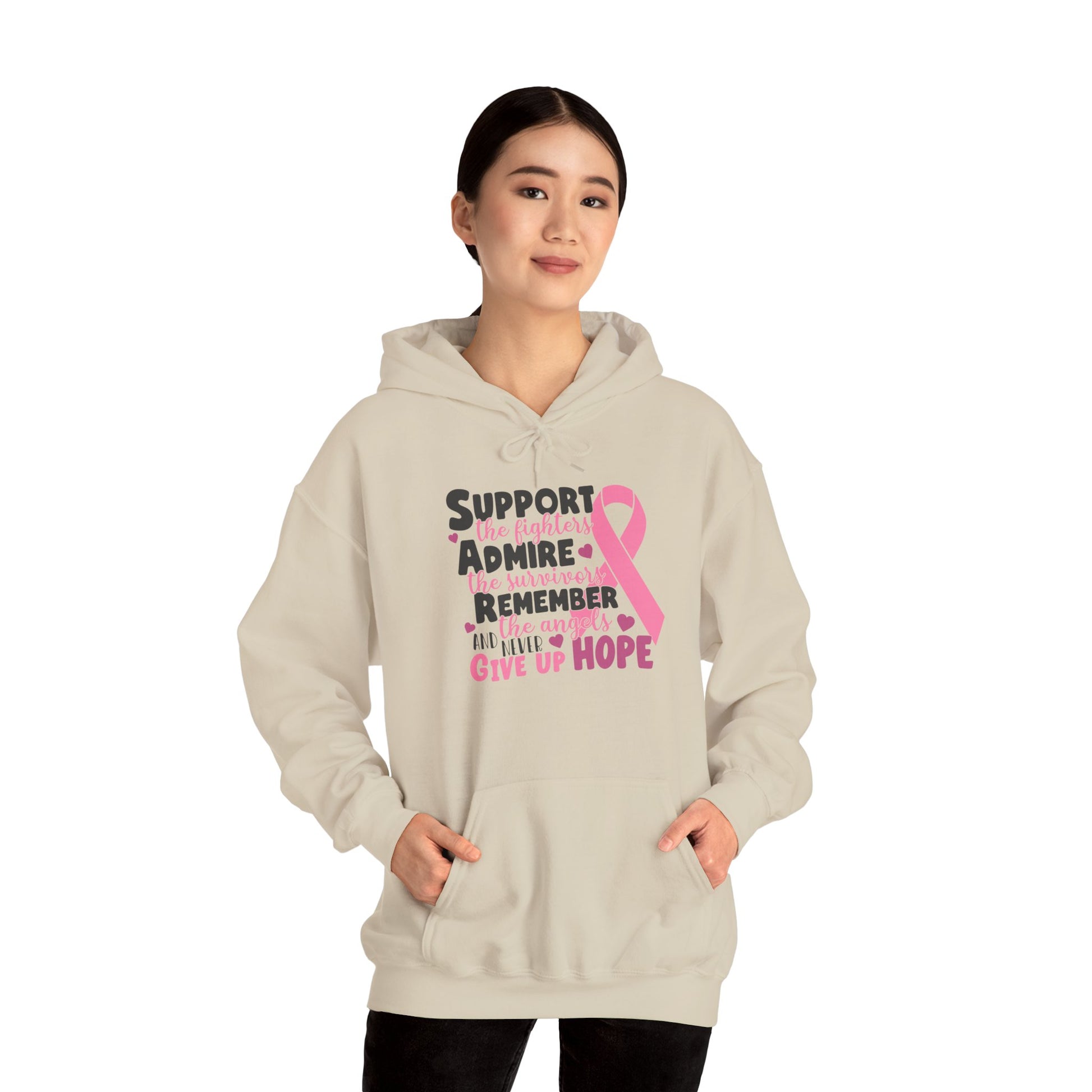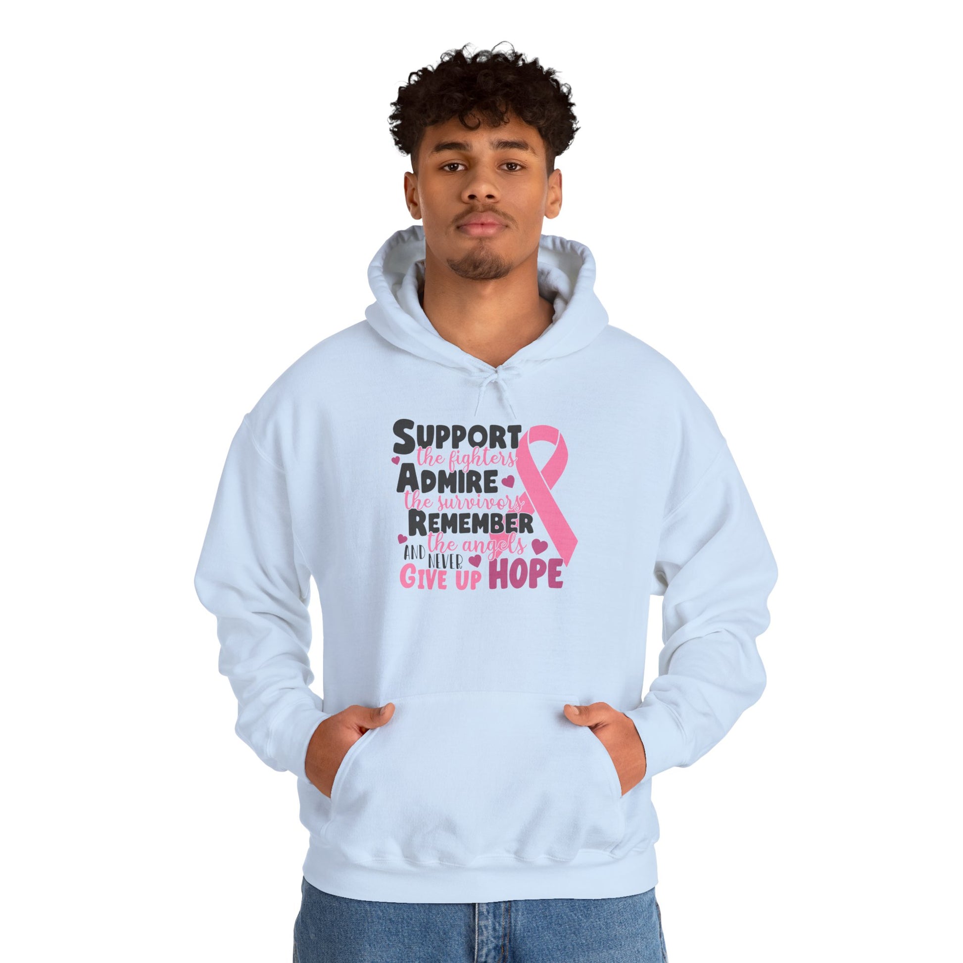 A soft, comforting hoodie that wears like an embrace. This medium-weight pullover brings quiet strength to everyday moments with a heartfelt breast-cancer-awareness design—support, admire, remember, and a bright pink ribbon that stands for hope. The roomy kangaroo pocket and double-lined hood invite you to pull it on for clinic visits, fundraising walks, or slow mornings at home. It pairs easily with jeans or leggings and layers cleanly under a coat when the wind picks up. Wear it to show solidarity, to hold close the memory of someone you love, or simply to carry a gentle reminder of resilience through the day.