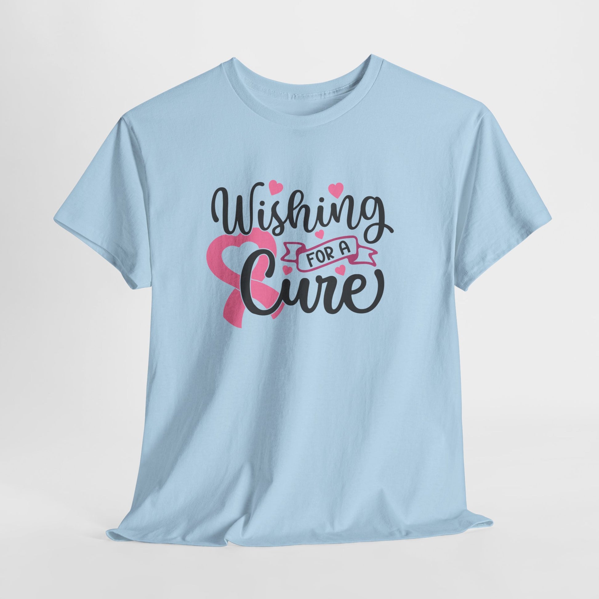 Soft, steady, and quietly hopeful — this classic tee carries a gentle message of support. The white cotton canvas puts a hand-lettered “Wishing for a Cure” design front and center, accented with a subtle pink awareness ribbon. It sits like a calm companion: breathable, midweight, and relaxed across the shoulders. Wear it to fundraisers, recovery milestones, or low-key days when you want to show solidarity without shouting. The simple silhouette layers easily under a cardigan or over a long sleeve, and the durable print methods keep the artwork crisp through many washes. Thoughtful details — like a tear-away label and ribbed collar — make it comfortable for all-day wear while the ethically sourced cotton and OEKO-TEX certification give quiet assurance about its quality.